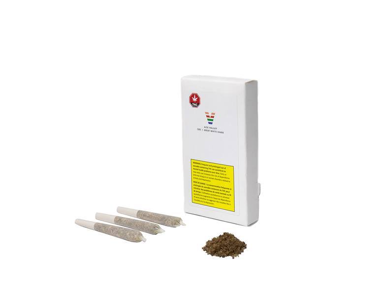 Ace Valley's CBD pre-rolls take premium, indoor-grown whole flower and package it for maximum convenience. Our strain of choice is a Great White Shark blend.