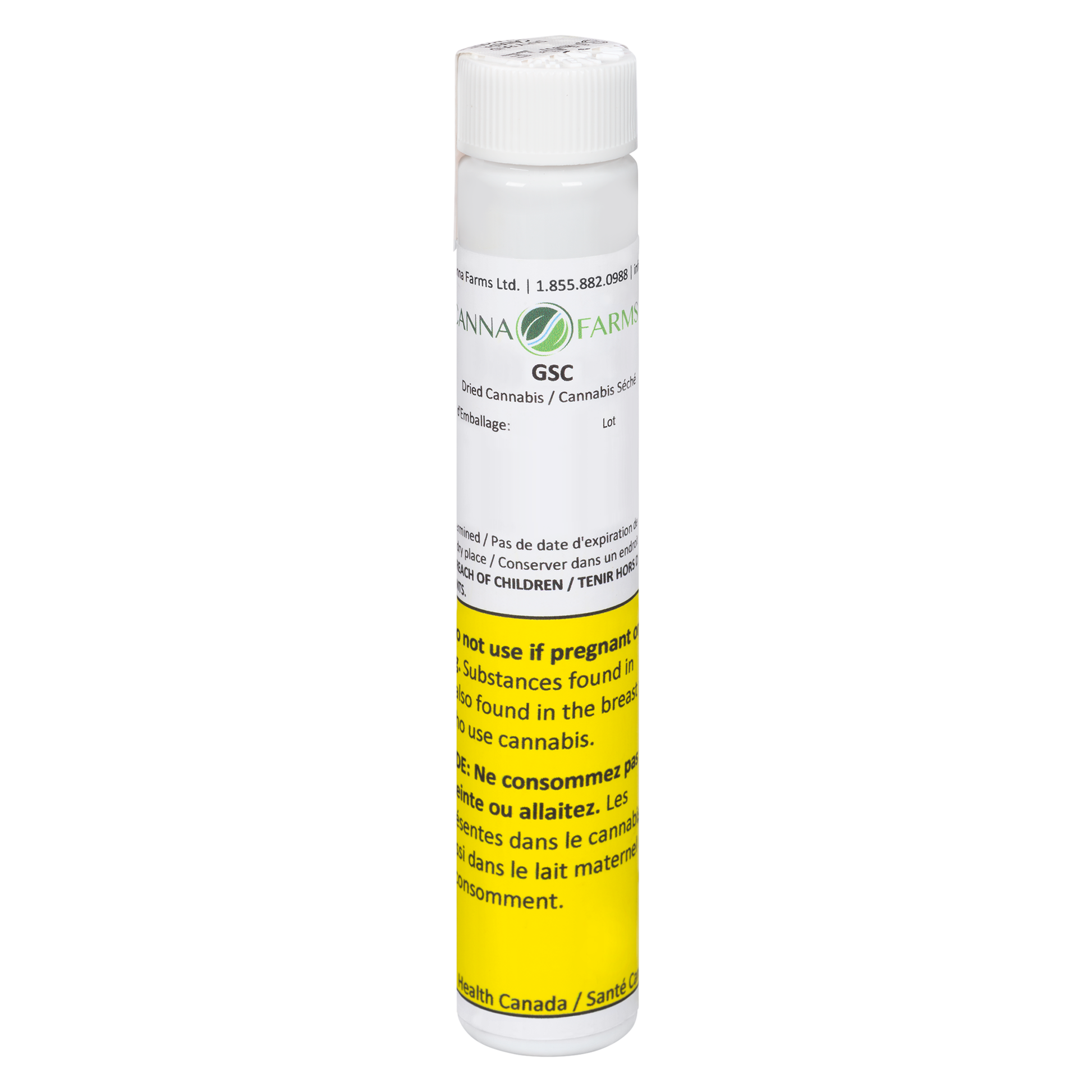 GSC is grown indoors in B.C. by Canna Farms. It's an indica-dominant hybrid of OG Kush and Durban Poison, with medium THC potency and a terpene mix of limonene, beta- and trans-caryophyllene, alpha-pinene and linalool. It's available as a 1 g pre-roll and a 3.5 g package of dried flower.