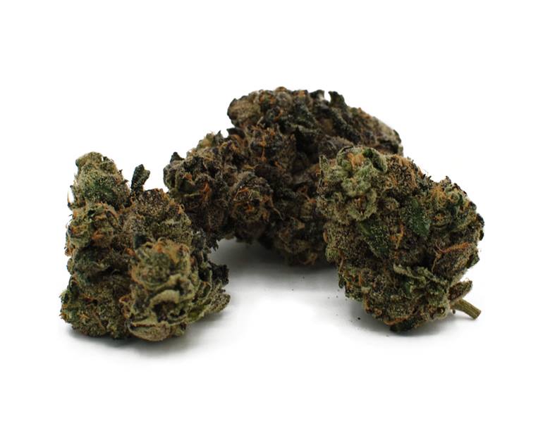 Sunset Sherbet is an indica-dominant hybrid strain that is a potent cross between the hugely popular Girl Scout Cookies and Pink Panties strains. This dank bud boasts a THC level ranging from 21 to 26 per cent. Sunset Sherbet has the aroma of bubble-gum and berries, and it tastes of sherbet with a sweet, earthy aftertaste that intensifies as you exhale. Sunset Sherbet buds have enormous, oversized dense Christmas-tree shaped, minty green nugs covered in long, twisty, fiery orange hairs. These nugs are caked in a thick layer of frosty white trichomes and are sticky with delicious resin.