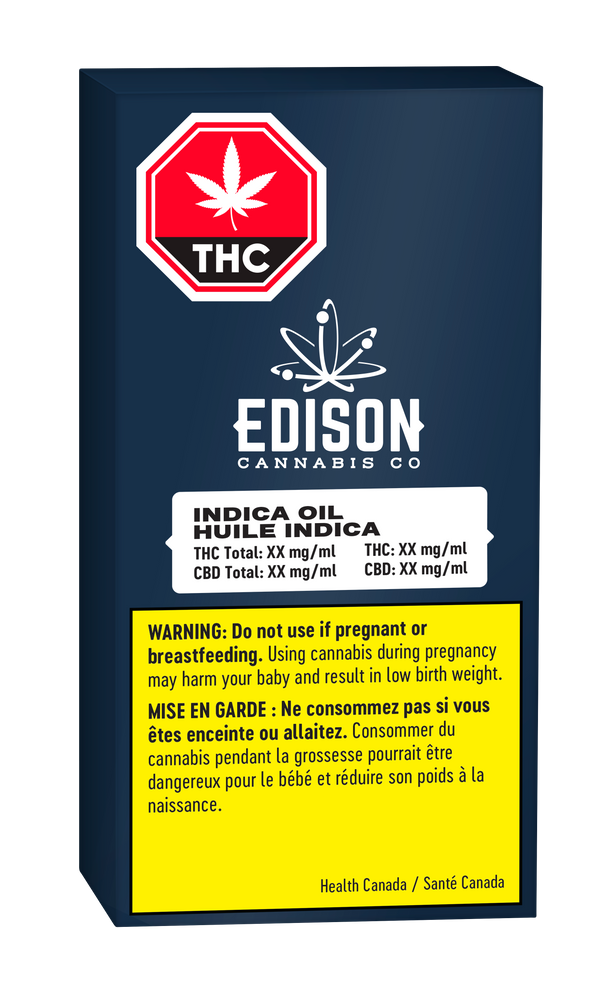 The THC in Edison's Indica Oil is ethanol-extracted from indoor-grown indica-dominant cannabis, and is formulated with organic sunflower oil. It features beta-caryophyllene in its terpene profile for a spicy, woodsy taste. The oil has mild THC potency and comes in 25 ml bottles. All oil products sold at OCS.ca are for ingestion only. DO NOT smoke or vape these oils. Use as directed.