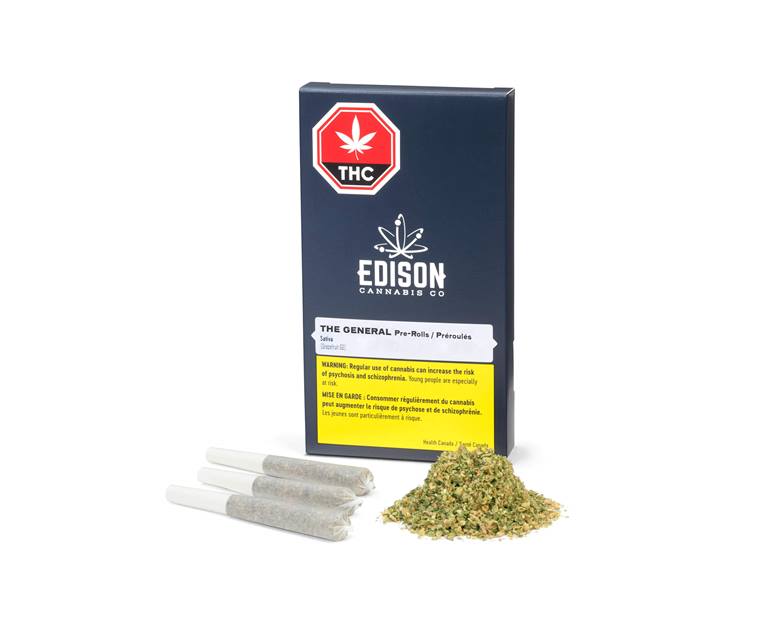 Edison's sativa-dominant, THC-potent The General can be identified by its citrusy gasoline aroma. Every plant at Edison is nurtured in data-backed, strain-specific grow rooms with customized micro-climates to ensure consistent quality. Each Edison pre-roll is filled with high quality, evenly milled flower, outfitted with a support-providing filter and is hand-inspected before it's packaged.