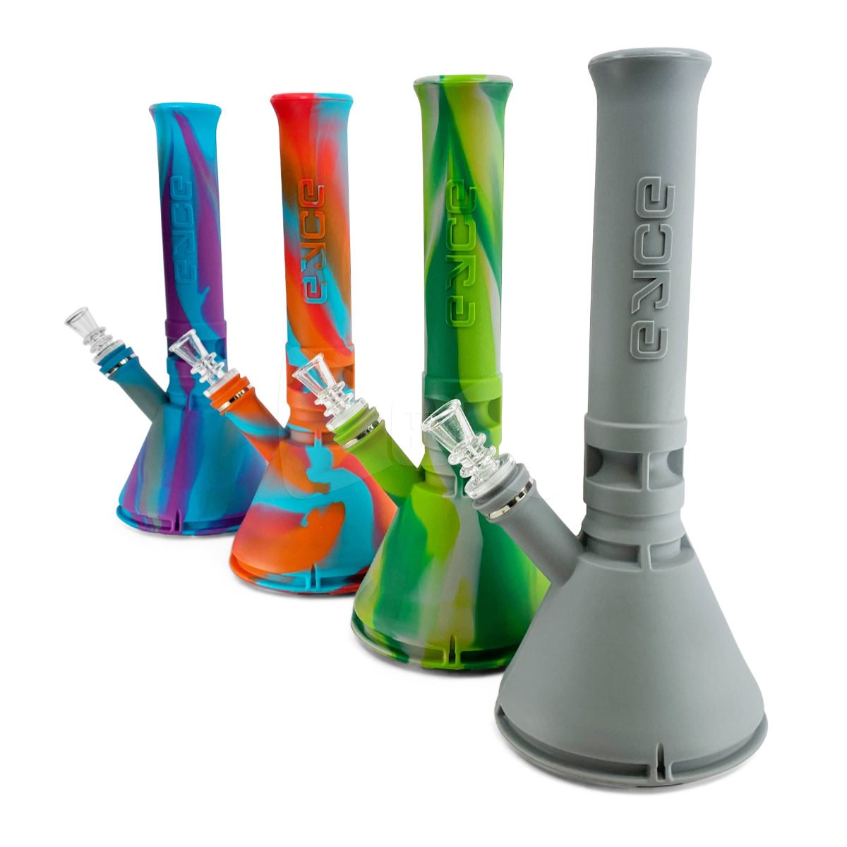 Magnetic Lighter Holder Diffused Glass Downstem & Slide Platinum-Cured Silicone Hidden Concentrate Pad Built-In Hidden Stash Jar & Material Tool Assorted Colours Lifetime Warranty Eyce has taken classic smoking style and elevated it with an ultrafunctional design to form the Beaker. Standing at 12 inches tall, the Beaker delivers traditional water pipe filtration in a contemporary form. Crafted from virtually indestructible silicone and borosilicate glass, the Beaker is extremely durable and portable, making it a standout compared to its all-glass counterparts. The platinum-cured silicone ensures high-heat resistance while also providing flexibility and a comfortable grip. A heavy-duty glass bowl securely fits in the universal 14 mm female downstem, but is easily removable and simple to clean. The lid doubles as a pad for working with your material while a magnetic ring, secured around the downstem, keeps anything metal, such as a lighter or stir tool, easily accessible. Built with covert compartments, your stash and material tool will be discreetly hidden for on-the-go use.