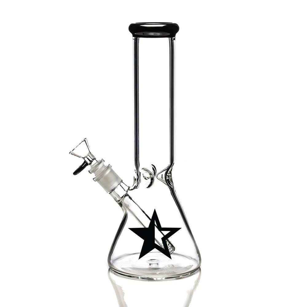This product is final sale. Famous X's beaker 12" bong features a diffused downstem with a complex inline percolator system to cool down the smoke for smoother inhalation. It's thick, hand blown, borosilicate glass fabrication makes it highly resistant to thermal shock. Features also include an ice catcher and a pull-out glass bowl that serves as the carburetor. This product comes in clear glass with black trimmings.
