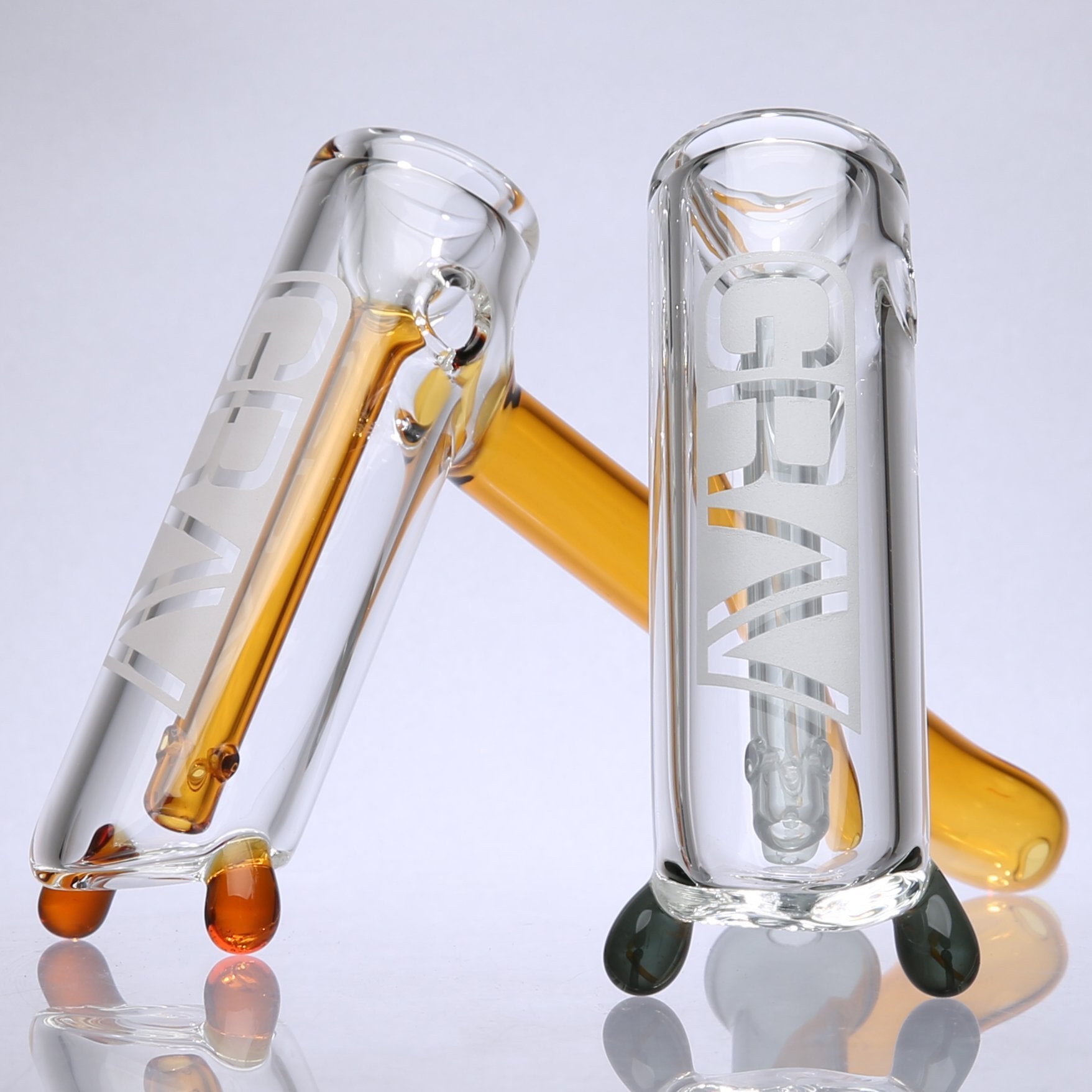 The small Grav Hammer Bubbler is 3" tall and made on 25mm tubing with an etch label. The body of the bubbler is clear while the mouthpiece, downstem, and feet are coloured glass. Its fission downstem diffuses smoke through water, and its feet stabilize the bubbler between uses. No accessories are necessary for using this bubbler, and it functions best with approximately 0.5" of water. Bubbler Features Length Height 5" Use With Dry Herb Carb On The Left Designed By Dave Daily Made on 25mm Tubing Etched Logo Accent Colours What's in the Box 1x - Basic Bubbler Can with Colour Accents by Grav