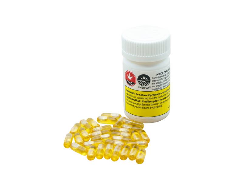 INDIVA Indica capsules are designed for easy ingestion and are a favourable alternative to smoking and vaporizing. The oil is derived using CO2 extraction, is formulated with MCT oil and the capsules are vegan friendly.