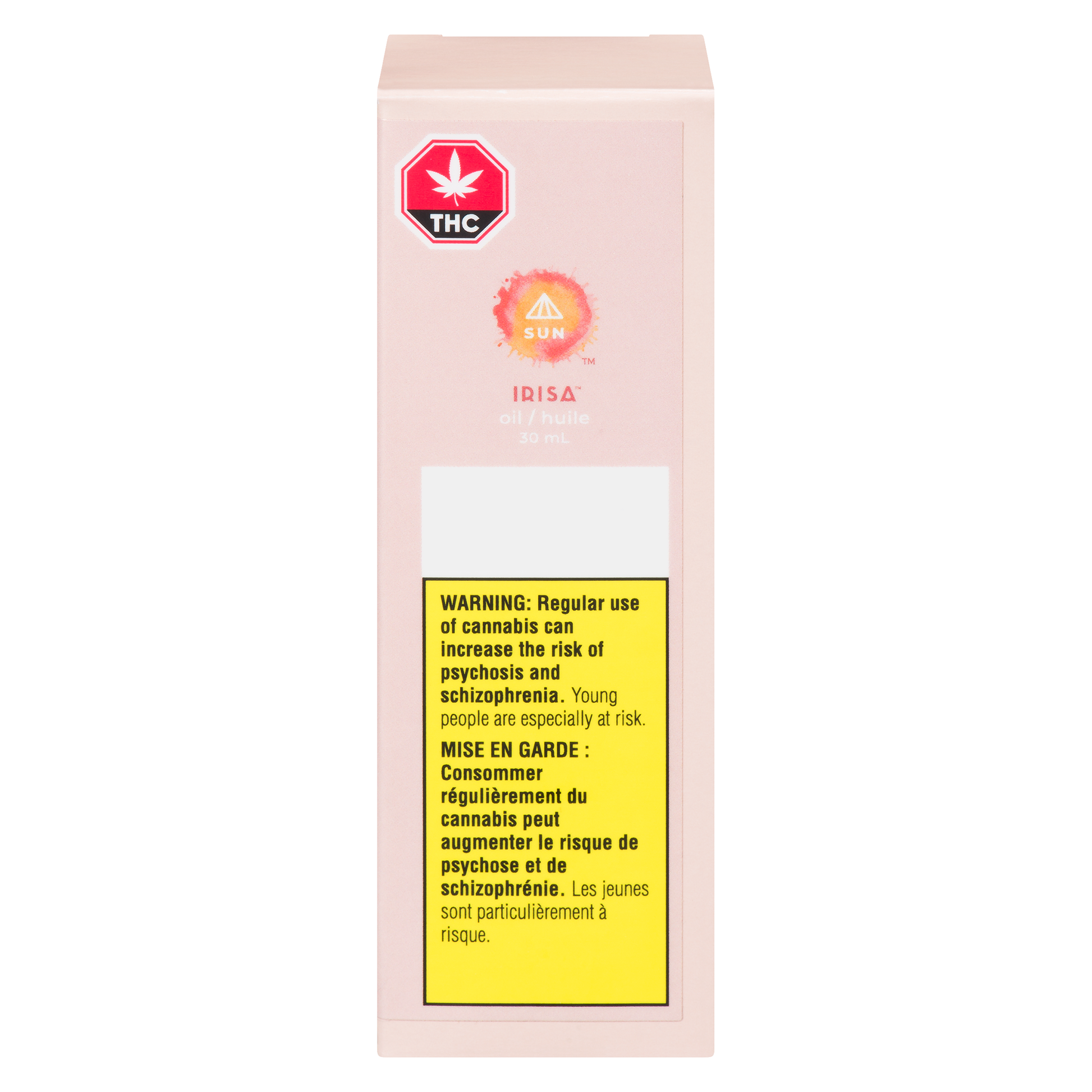 Irisa Sun Oil is a blended formulation with a 3 13 ratio of THC to CBD, and it's made with the ethanol extraction method. The terpenes have been removed from this oil, which has very mild THC potency. It comes in 30 ml bottles, and the indoor-grown strain is also available in pre-rolled packs of three. All oil products sold at OCS.ca are for ingestion only. DO NOT smoke or vape these oils. Use as directed.