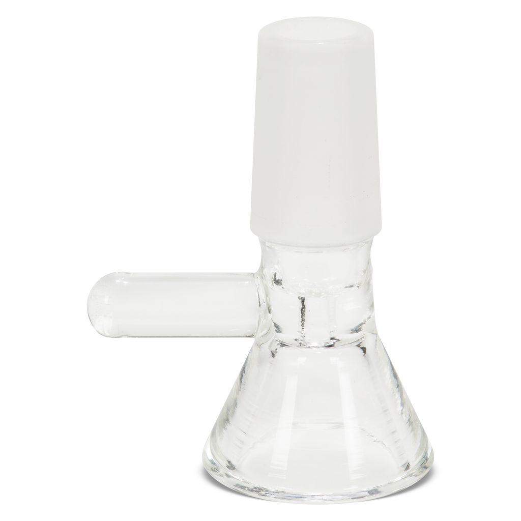 This product is final sale. The Universal Bowl is made of borosilicate glass and has a 14 mm male joint that will fit into any 14 mm female joint. This replacement bowl is made of clear glass and was designed with a small round handle that makes it easier to use, especially when hot. It's available in only one colour.