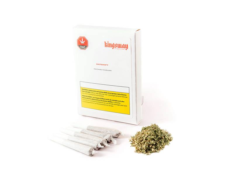 Dayshift pre-rolls are rolled with a blend of OG sativa-dominant whole flower. Dayshift pre-rolls are rich in limonene and myrcene, and smoke smooth with a citrusy and fruity flavour.
