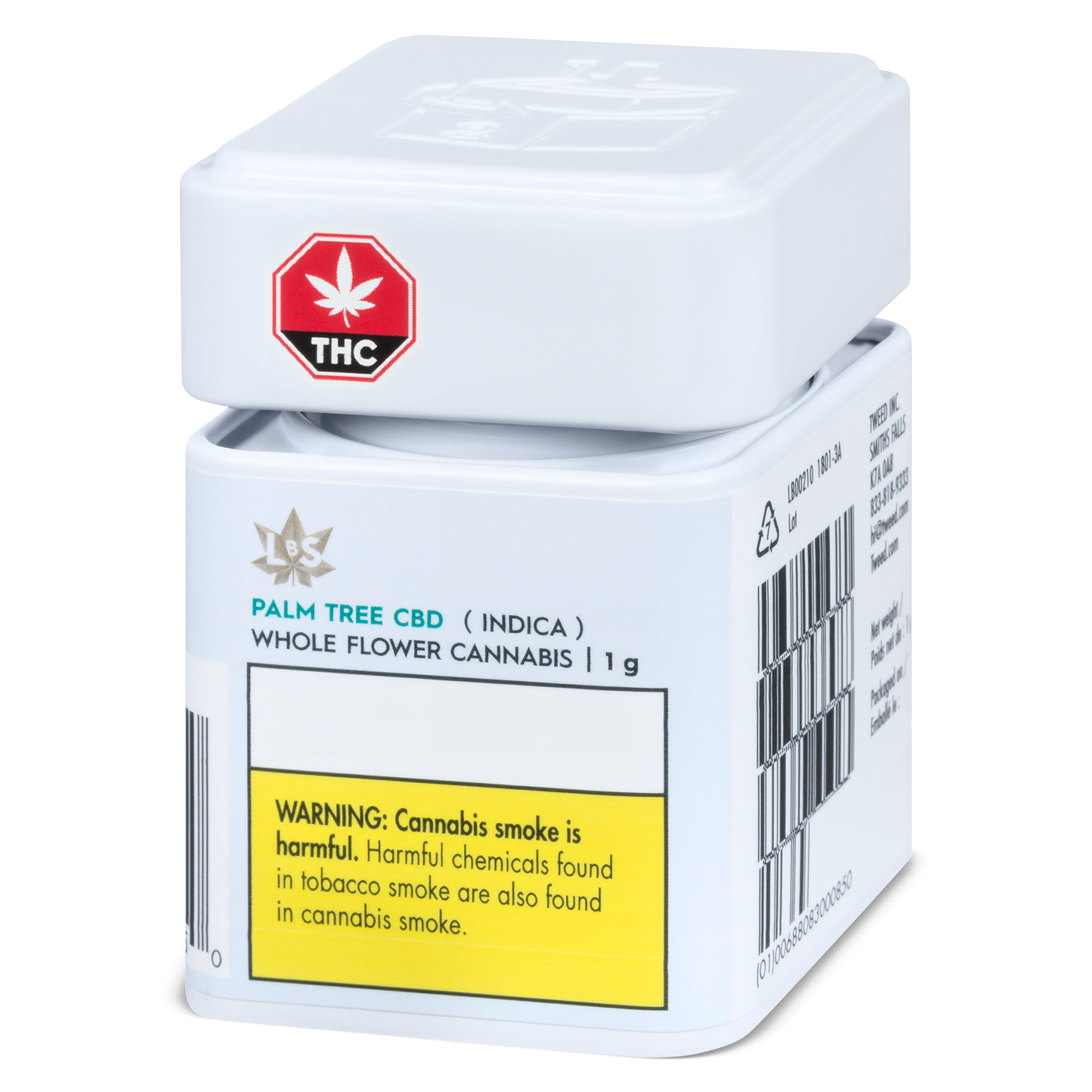 Palm Tree CBD from LBS is an indica-dominant strain with dense lime-coloured buds, purplish highlights and bright orange pistils that resemble the Hashplant strain. Grown in an indoor greenhouse, it has a terpene mix that includes alpha-pinene, eudesmols, guaiol and myrcene. It has mild THC potency and is available in various dried flower weights.