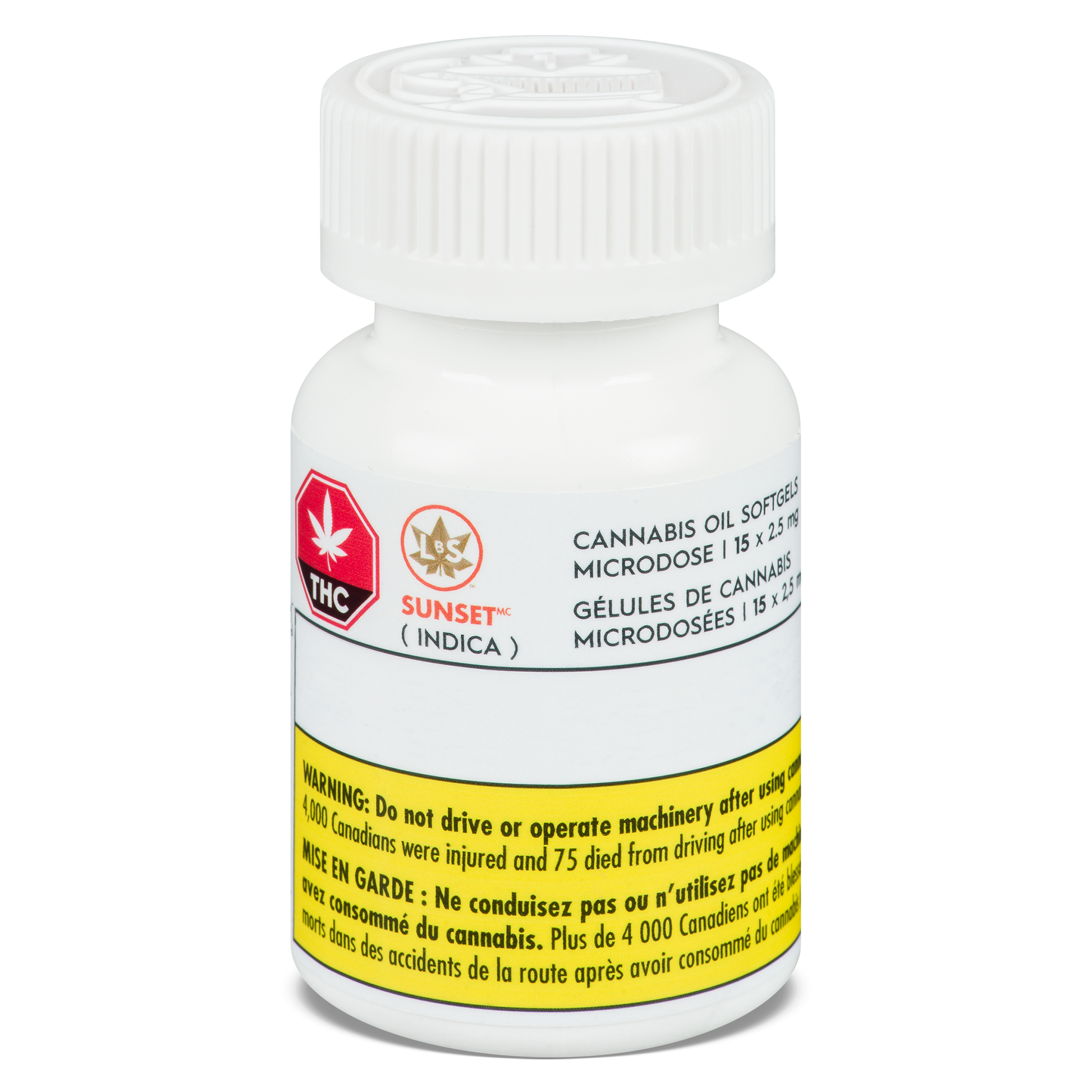 Sunset softgels are made with CO2 extract from a hybrid greenhouse-grown indica-dominant strain with very mild THC potency, and are formulated with non-GMO liquid coconut oil, gelatin and glycerine. It's available in 15- and 60-capsule bottles.