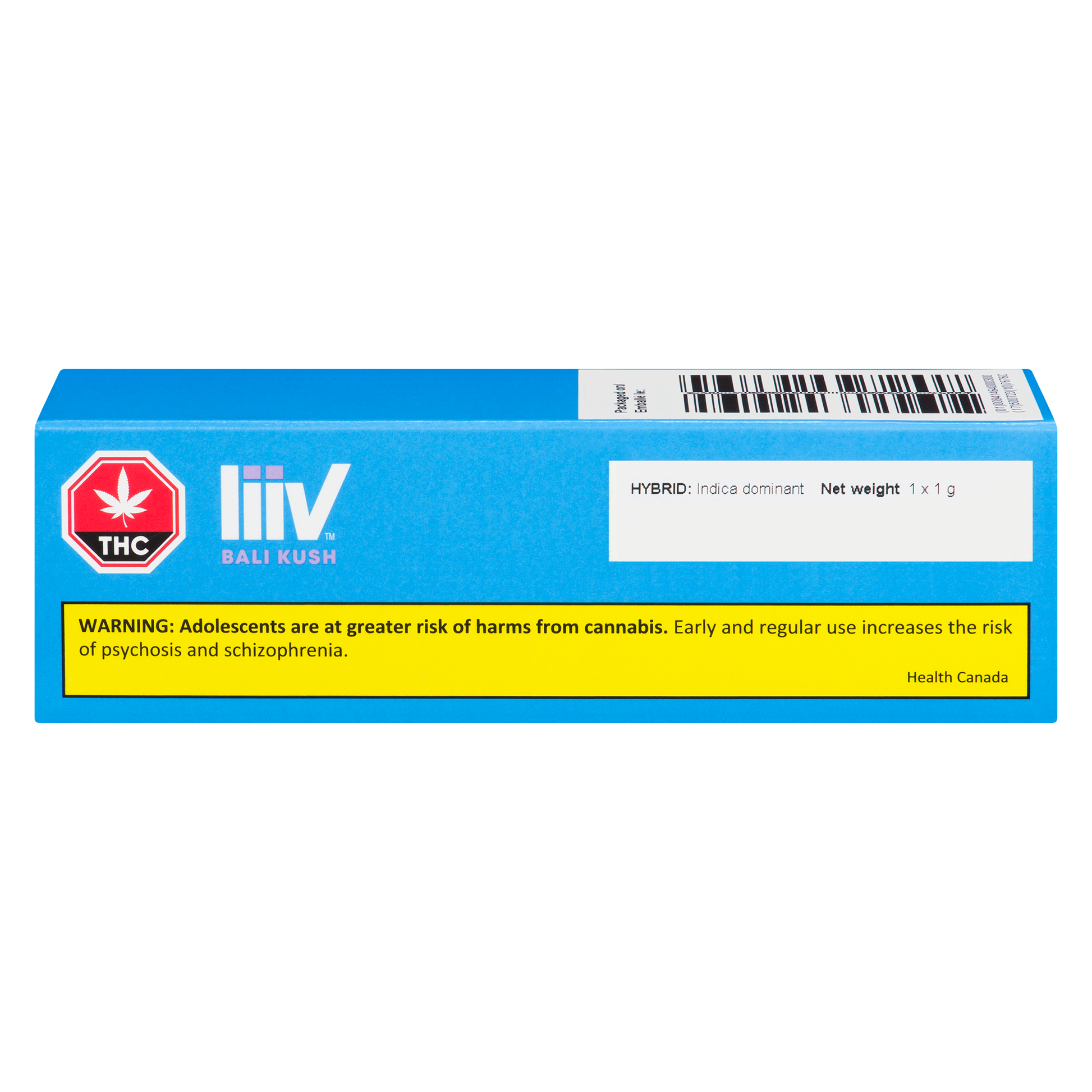 Bali Kush is a purple and green indica-dominant strain grown and hand-sorted in the Niagara Escarpment. It has very strong THC potency, and an earthy scent with musky, sweet overtones that come from its terpene mix of myrcene, beta-caryophyllene, bisabolol, humulene and limonene. Bali Kush is available pre-rolled and in three dried flower sizes.
