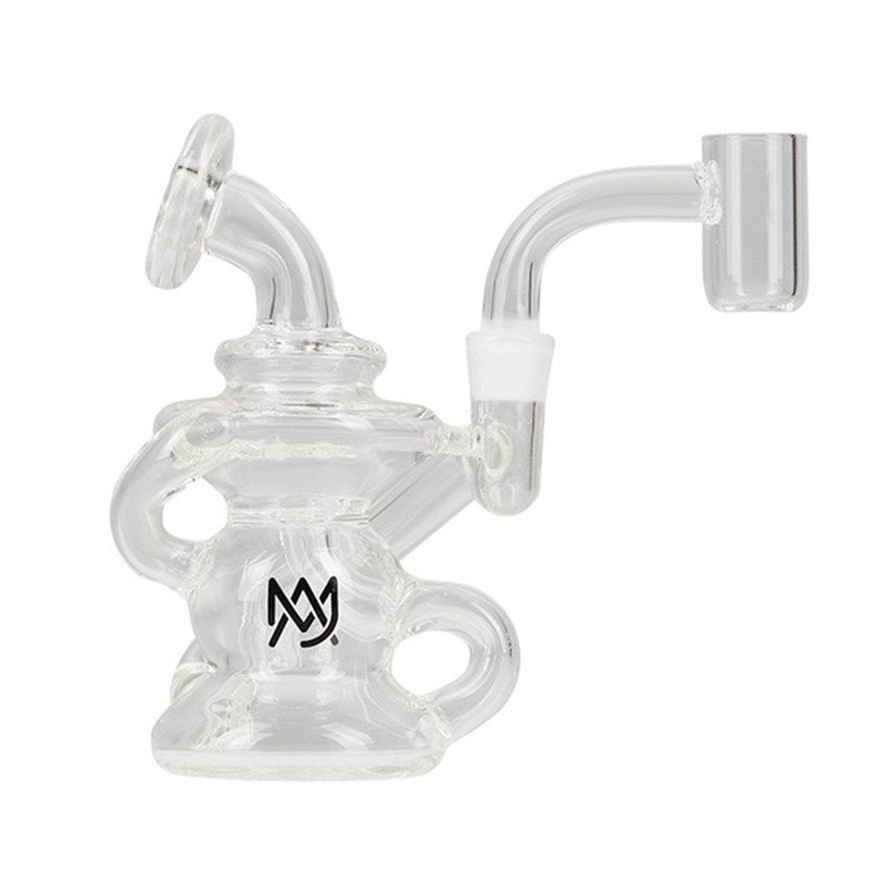 The MJ Arsenal Hydra Mini RigTM boasts an advanced Klein recycler, pulling water into a higher chamber and thoroughly filtering smoke for smooth inhales. As the smoke travels through the triple hole percolator, it becomes moisture-rich and dense; the filtration system removes impurities, enabling the Hydra to deliver pure rips of potent vapor. The Hydra comes with a custom-made 90Â quartz banger; thermal-resistant and 2 mm thick, this premium banger allows for optimal flavor transfer. In addition to a wide and sturdy base, the Hydra was engineered with a rear- mounted side-pipe for ultimate spill resistance. Advanced Klein Recycler Triple Hole Percolator Custom-Made 90Â Quartz Banger Water Filtration For On-the-Go Sessions Crafted From Handblown Borosilicate Glass 2 mm Thick