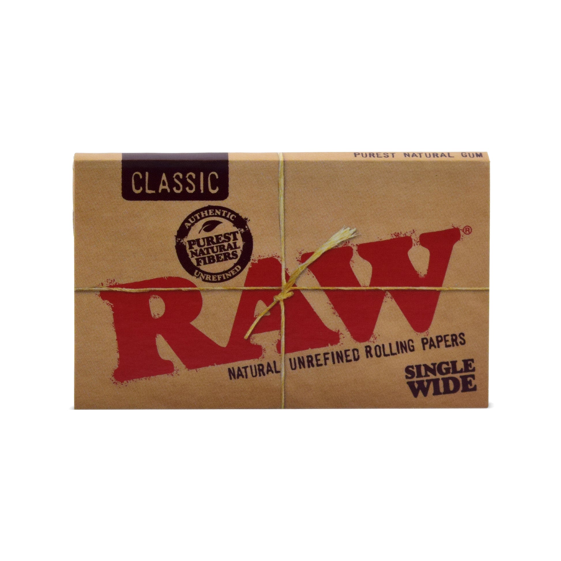This product is final sale. RAW's Classic rolling papers are made from a flax and hemp hybrid blend of unbleached (not chlorine-whitened) fibres. The acacia gum line is non-toxic, and the paper is a translucent natural light brown colour. Each paper features RAW's patented crisscross watermark, which helps prevent runs and maintains the even-burning characteristics. All RAW papers are vegan-friendly with no additives. Available in three sizes 1 1/4" (50 per pack), king-size slim (32 per pack) or 1 1/4" double window (100 per pack).