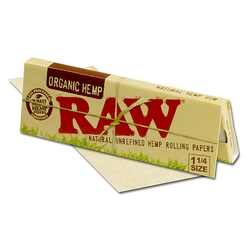 This product is final sale. RAW's organic unbleached rolling paper is made from organic hemp that is sustainably farmed and vegan approved, and it seals with a non-toxic acacia gum line. The thin tan paper is even lighter than the original RAW products and features the company's patented crisscross watermark that helps prevent runs and maintains the even-burning characteristics. Available in three sizes 1 1/4" (50 per pack), king-size slim (32 per pack) or 1 1/4" double window (100 per pack).