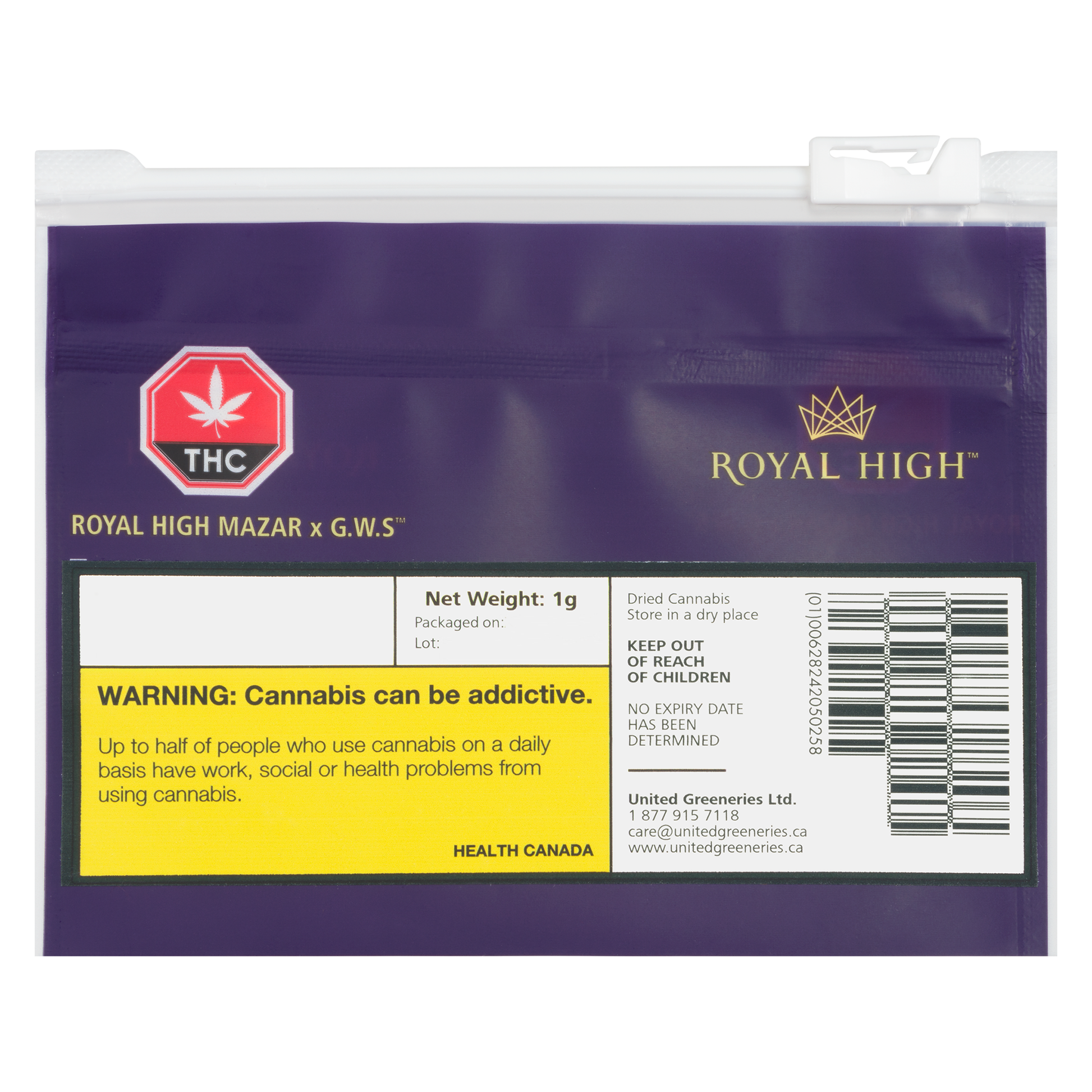 M. Great White Shark from Royal High is an indoor-grown indica-dominant strain from Vancouver Island. It has strong THC potency and features a full-bodied flavour with skunky notes. The terpene profile of this strain includes myrcene, caryophyllene, pinene and humulene, and it's grown with mother plants from imported seeds. M. Great White Shark is available as dried flower in 1 g, 3.5 g and 7 g weights.
