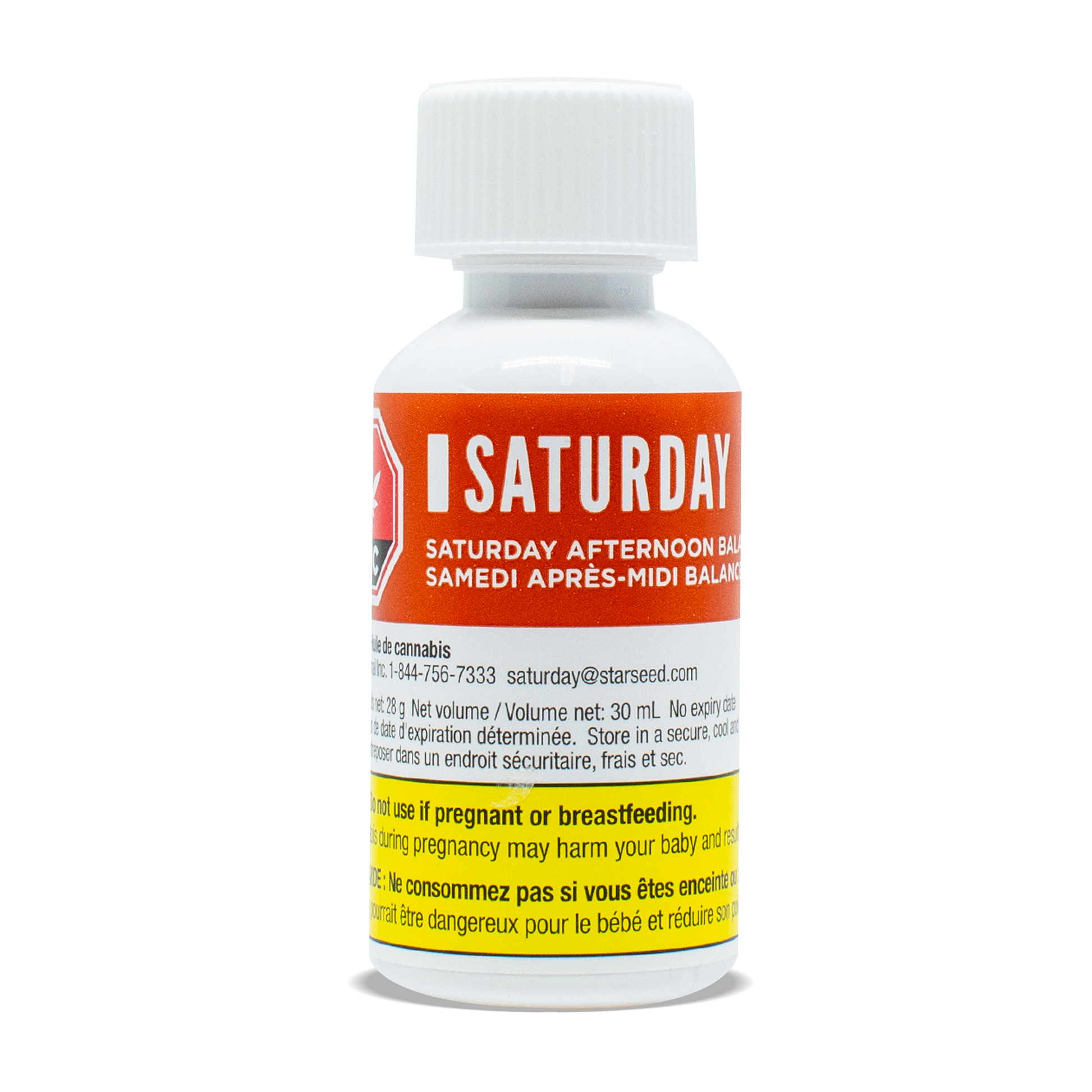 Made with a CO2 extraction of an earthy indica-dominant strain with mild THC potency, Saturday Afternoon Oil has alpha-pinene and limonene terpenes that create a spicy, herbal and citrusy pine flavour. It's available in 30 ml bottles. All oil products sold at OCS.ca are for ingestion only. DO NOT smoke or vape these oils. Use as directed.