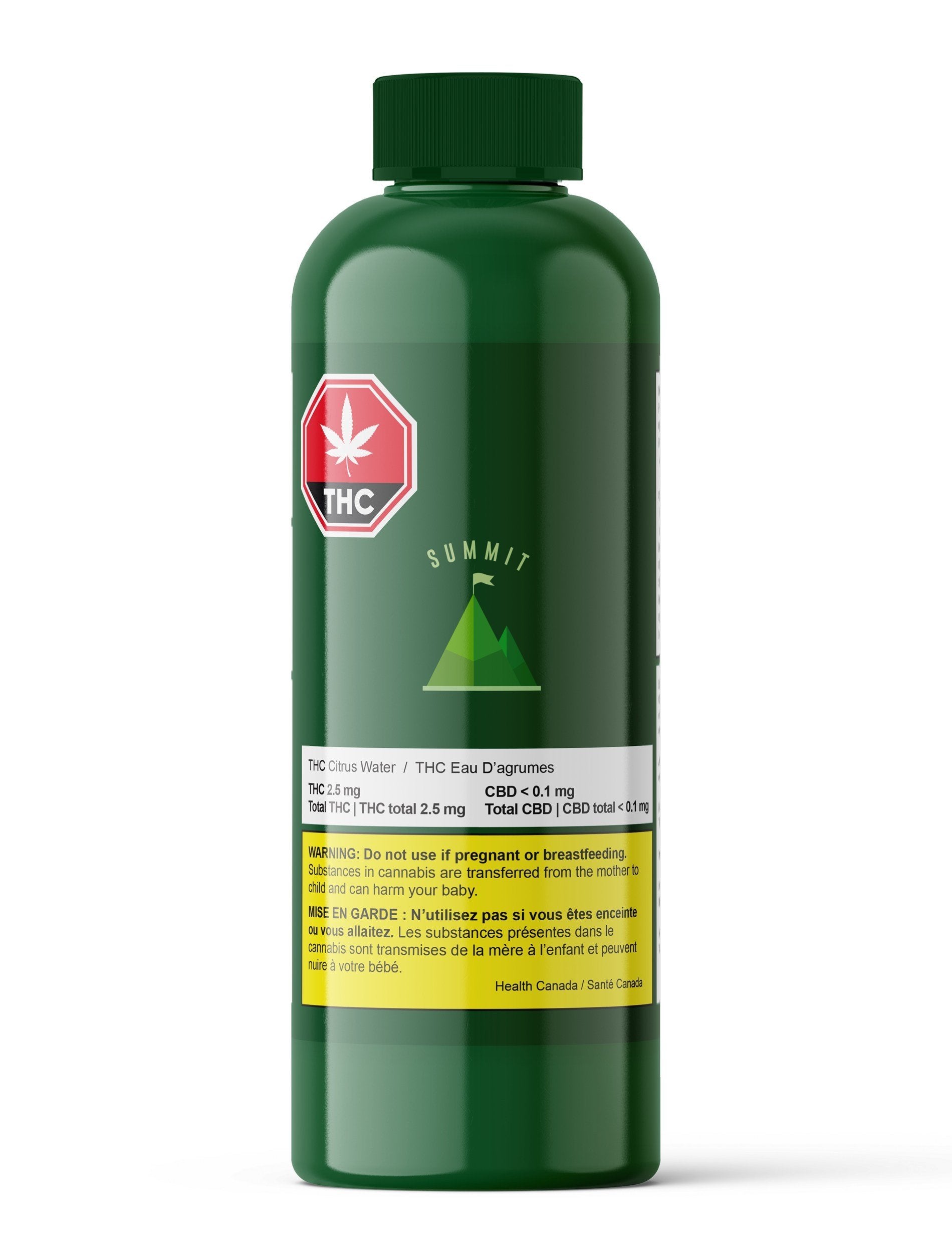 Summit THC Citrus Water is a non-carbonated, naturally flavoured water that contains 2.5mg of THC. It has the colour and opacity of lemonade. Citrus Water contains flavours such as lemonade and grapefruit. This beverage is light and refreshing with a smooth mouthfeel. The cannabis is odourless and tasteless.