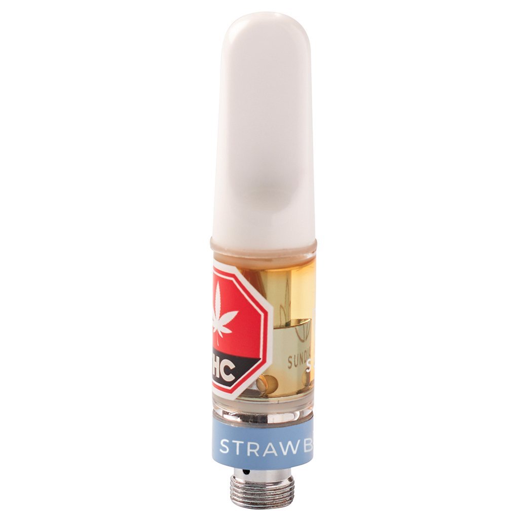 Strawberry Twist (Strawberry Banana) vape is an indica-leaning hybrid with strong-THC potency. Bred from the Banana OG and Bubble Gum strains, it has a full-bodied tropical flavour. Part of the Sundial CALM series, Strawberry Twist's terpene profile is mostly myrcene and caryophyllene, rounded out with smaller concentrations of alpha-pinene and humulene. Sundial offers unique single-strain extracts made from whole flower and shake, using a broad-spectrum C02 extraction process to preserve the strain's natural cannabinoids and terpenes. Sundial refines their extracts with care and package them in high quality glass and ceramic cartridges that flow smoothly on every draw. Their vape products have no additives, no fillers and no artificial flavouring – Just Cannabis.