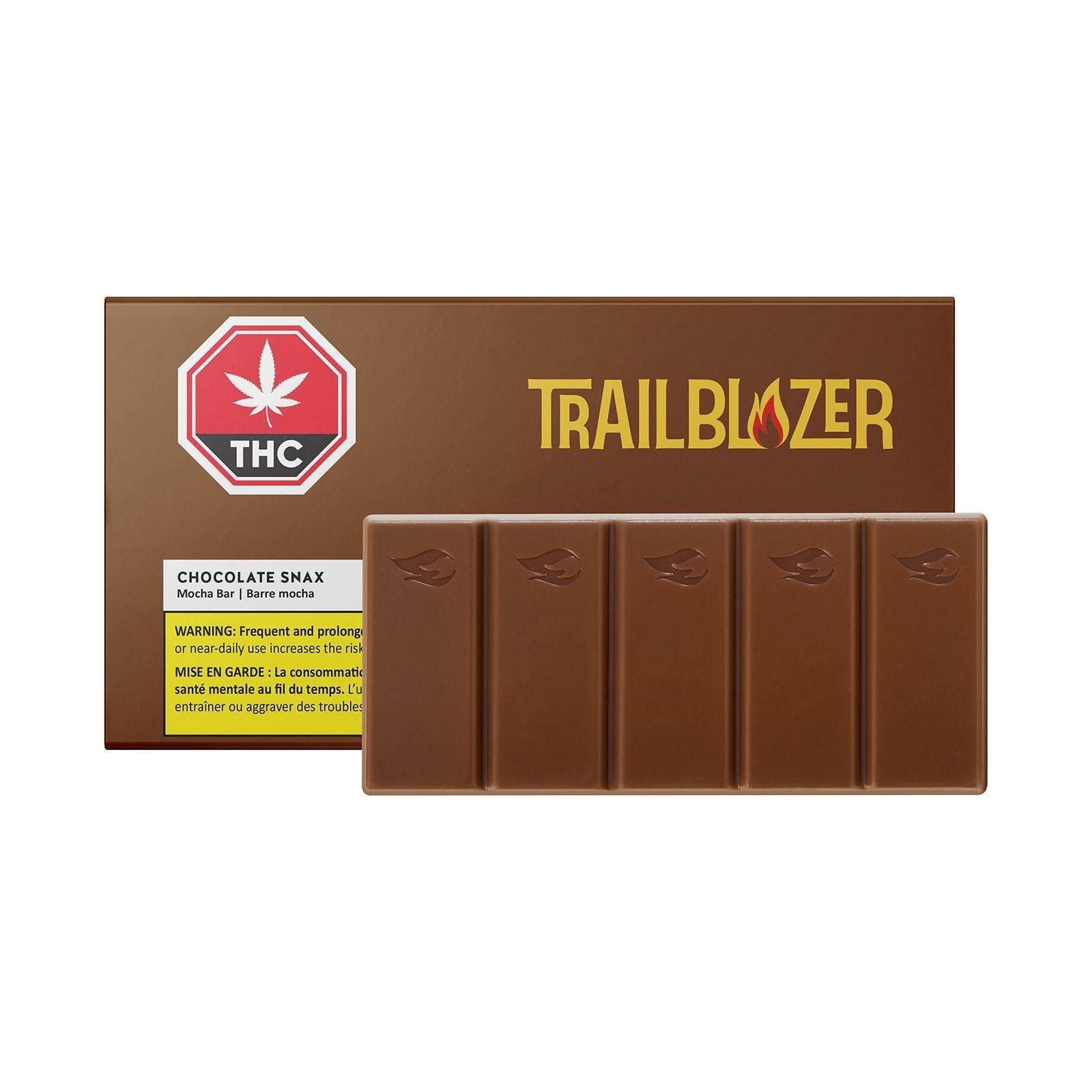 Trailblazer Snax coffee milk chocolate features a light, crisp flavour with a rich chocolate coating. Each bar contains 10 mg of THC, divided over five even pieces.