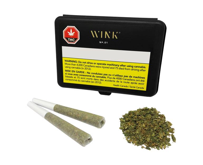 Wink 01 is a sativa-dominant hybrid with floral undertones. It's grown in an indoor, hydroponic facility, purpose built for the product, hand-trimmed and hang-dried. Each package contains 2 pre-rolls (0.5g each).